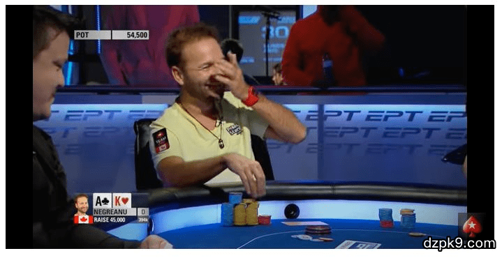 绝对是一个演技派的表现,在电视转播下搞了这出,解说还圆场说Negreanu是犯错了,好吧,鬼才会相信。