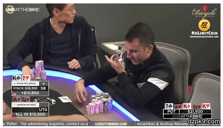 到底有没有全押,有摄像机开着,怎么可能赖得掉?Armenian Mike在牌桌上不止一次地嘴上说call然后弃牌,觉得很好玩,结果玩出火来了。