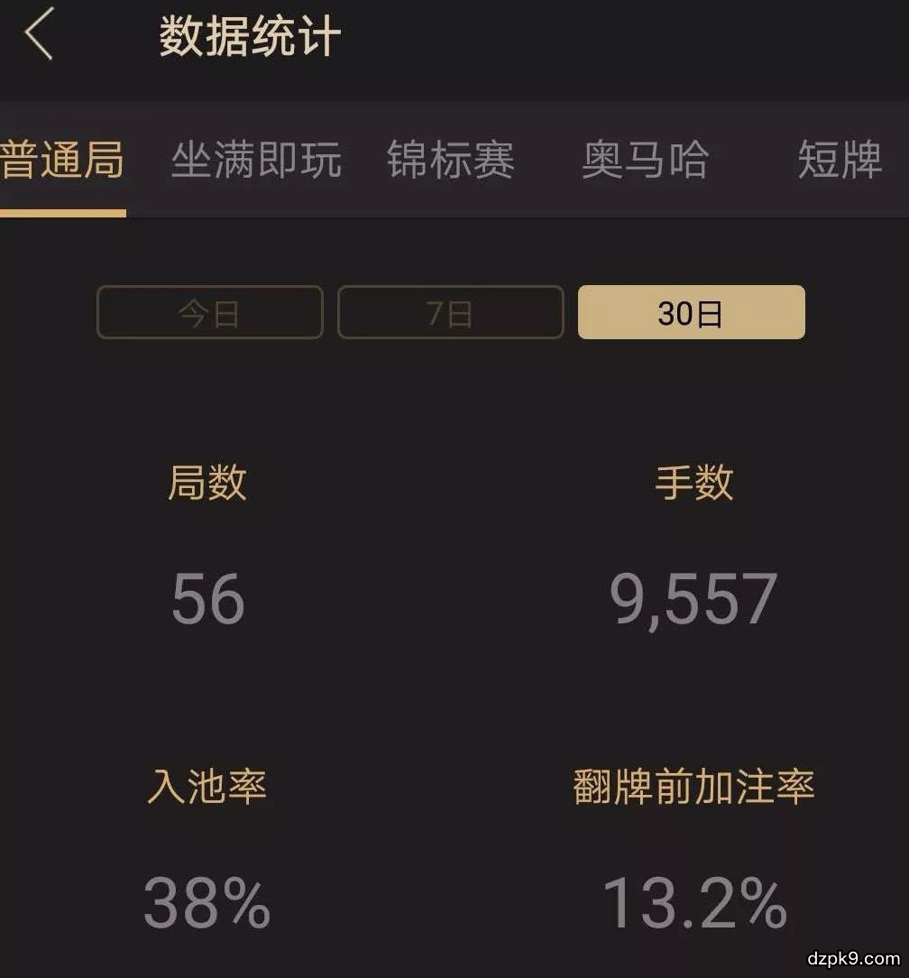 四个德扑APP数据分别为:牌局数,总手数。入池率和翻前加注率。入池率和翻前加注率也就是我们常说的vpip和pfr 。说说我总结的几个小技巧,给大家参考: