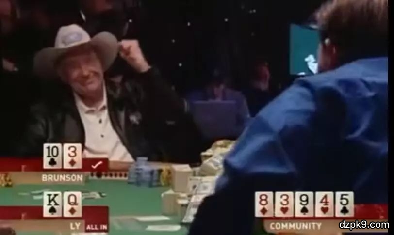 最后一手牌,Berland的底牌是8♥5♣,而Brunson居然又拿到了T♠2♥。