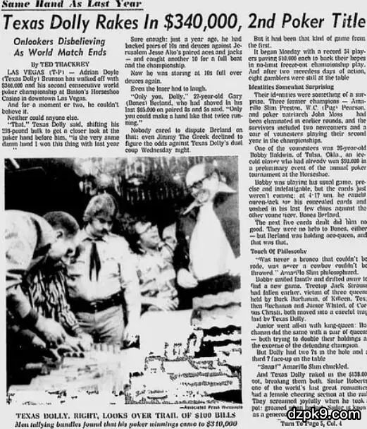 故事还得从1976年的WSOP(世界扑克系列赛)说起。当时WSOP刚举办到第七届,Doyle Brunson打入了主赛的最终单挑阶段。
