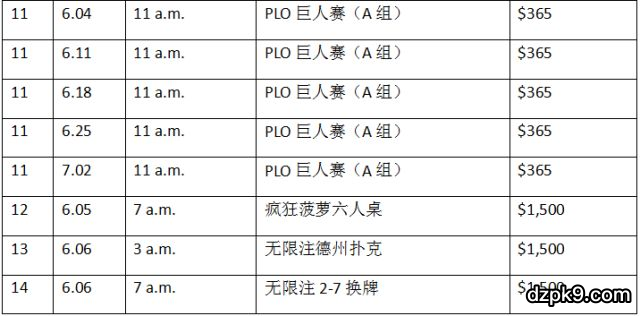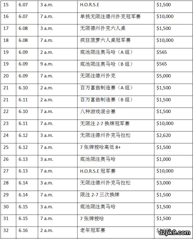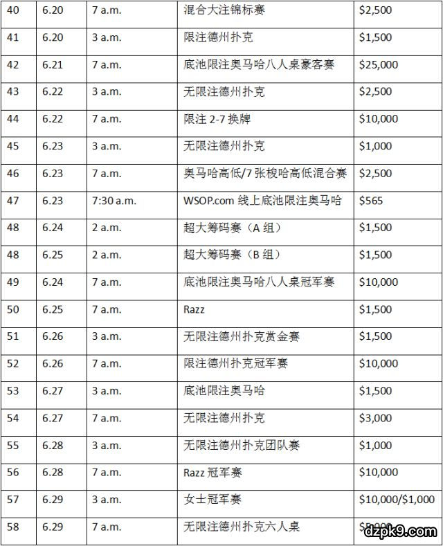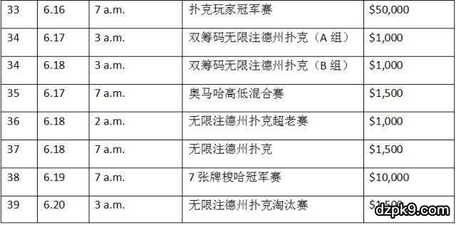 附:2018WSOP的赛程表