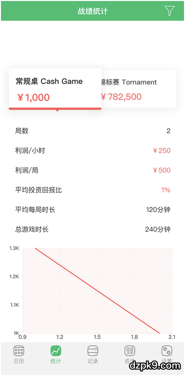 在添加自己的扑克场次,买入等数据后,经过AI的缜密计算,可以精确的通过数据、图形全面解析你的游戏状况。无论是锦标赛还是常规桌cash game,都可检测每小时盈利、平均游戏时长、平均投资回报比等重要数据。为你的资金管理,做一个判断。