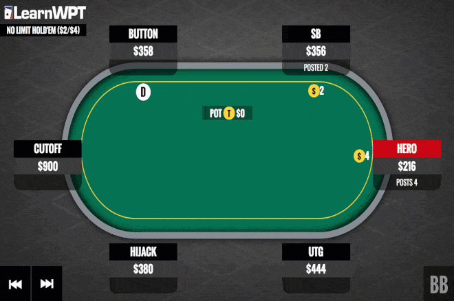 如果我们有更多起始筹码,我们有可能被迫放弃这手牌。因为这种筹码量,我们必须用顶对好踢脚牌继续和单个对手战斗。