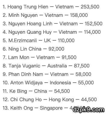 但是在极速赛1中,只有6名玩家能够得到奖励,在这6位玩家中,其中有一个越南人,一个新加坡人以及四个韩国人。