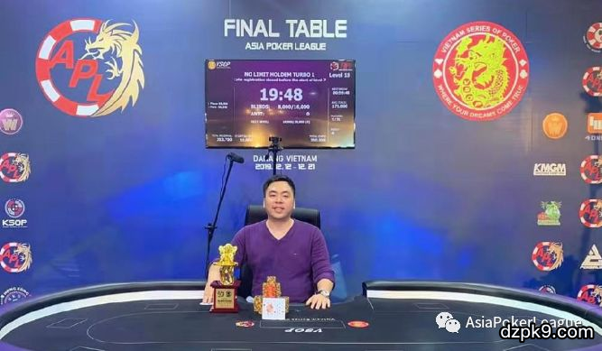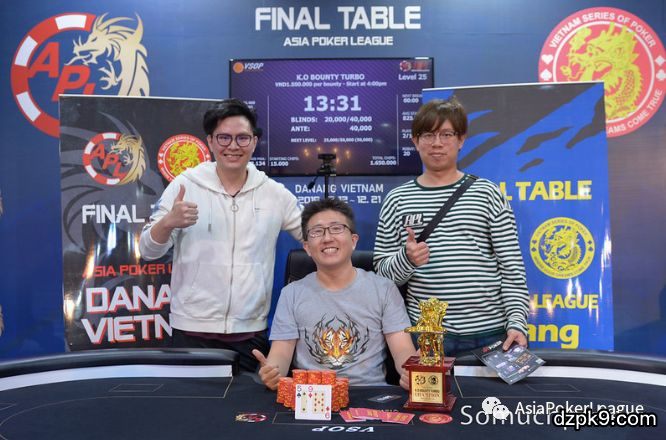 在本项无限德州扑克快速赛的比拼中,拿到自己奖励的前五名,有三名都是来自越南本土的选手,而冠军Nguyen Huu Duc也是如此,他不仅获得了83,500,000越南盾(约合3,617美元)的奖励,更是带走了无限德州扑克快速赛1的冠军奖杯。
