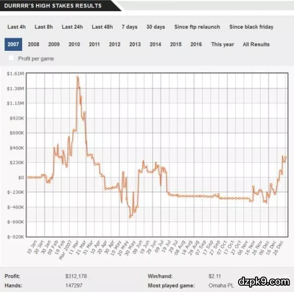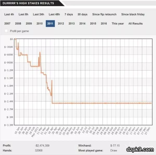 那么,Dwan 2010年在线上高额桌是个什么情况呢?其实还挺喜人的...