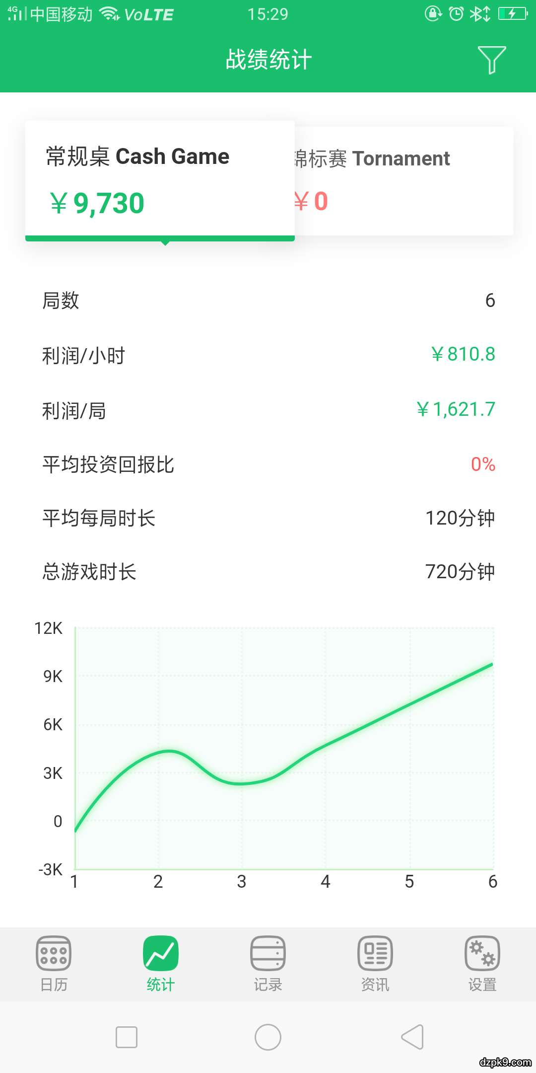 扑克账本APP,内有专属个人的战绩统计,分为常规桌和锦标赛两大类,有详细的收入波动曲线图,简单直观的展示个人战绩,更有当日抽签看牌运等个性化的特有功能!