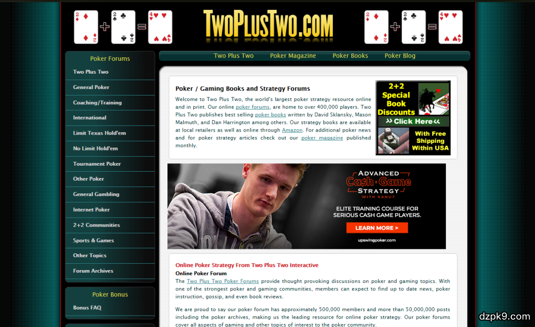 2+2论坛:全球最知名、历史最悠久的扑克论坛!在这里,能了解世界最先进前沿的扑克理论,全球扑克圈内发生的新鲜事、趣闻八卦,当然,最重要的是还能与全球的扑克好友一起交流讨论扑克!