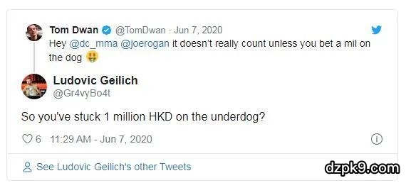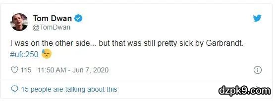 在线下比赛并不盛行的时间里,似乎那些高玩职牌都有着不一样的爱好和生活方式,就比如最近的毒王Tom Dwan,他在推特上声称自己在UFC250级别的拳击比赛中压了100万港币,不过最终却惨败收场,那一场比赛是Cody Garbrandt对阵Raphael Assuncao。