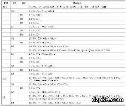 理论上,真正的纳什均衡策略往往是一种混合策略——某些牌你100%的时候全压,某些牌你100%的时候弃牌,少数边缘牌你的全压概率介于0%-100%之间。纳什均衡计算器给出的近似值是一种应该接近于纳什均衡混合策略的纯粹策略,