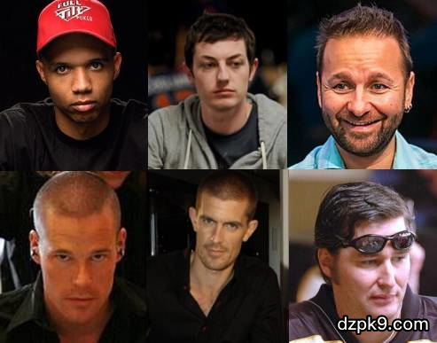 (上排:Phil Ivey, Tom Dwan, Daniel Negreanu,