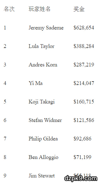 最终取得比赛胜利的是法国选手Jeremy Saderne,这是他的第一个冠军,收获职业生涯第一条金手链的同时还获得了$628,654奖金。