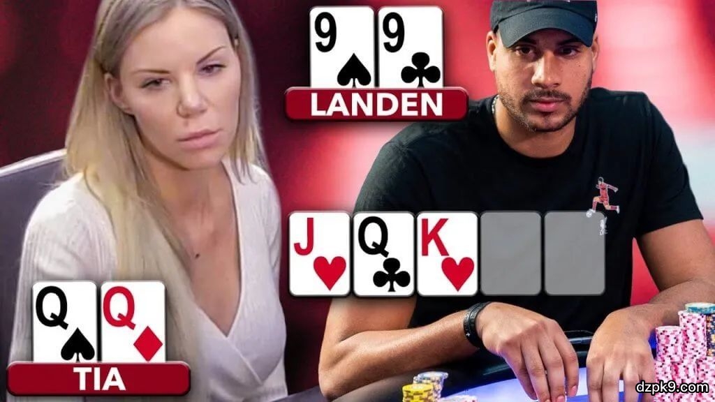 前堪萨斯篮球明星Landen Lucas,和这手牌的另一位主角Tia都是娱乐玩家,这是他们第一次正面交锋。Tia在HJ位拿着Q♠Q♦加注到200美元,她身后的Landen用9♠9♣再加注至725美元,Tia跟注,底池1,560美元。翻牌发出:J♥Q♠K♥,Tia过牌后Landen持续下注1000美元,Tia此时击中了暗三条,她并没有进行加注,只是选择了跟注。转牌:8♥,这对双方来说都是个吓人的牌,尤其是对于Tia。所以,当Tia又一次过牌后Landen转诈唬再次开火,与翻牌圈不同,Tia现在不适合再加注了,因此她再次跟注。底池为6,760美元。河牌:3♠,这应该是一张空白牌,Tia又一次示弱后,Landen迅速宣布全下。Tia看起来既震惊又困惑。她经过一番长考后,最终决定弃牌!