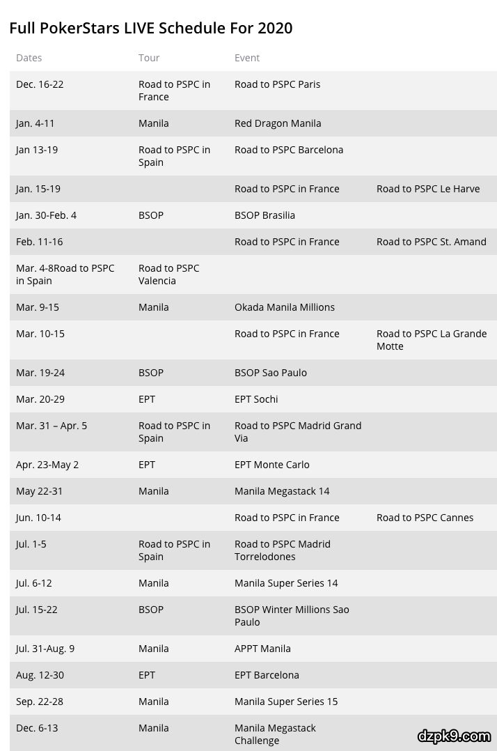 扑克之星2020年现场锦标赛日程安排表