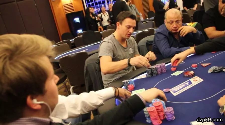 我今天在1/3的桌子上,枪口加1位置用AQ直接加到25。跟进来4个!小盲35o(o代表off suit,指不同花色)!大盲K7s(s代表suited,指同花)!一个中了5,一个中了7,各开一枪。我立刻把翻前加注额改为7,不中牌的C-Bet频率改为0。