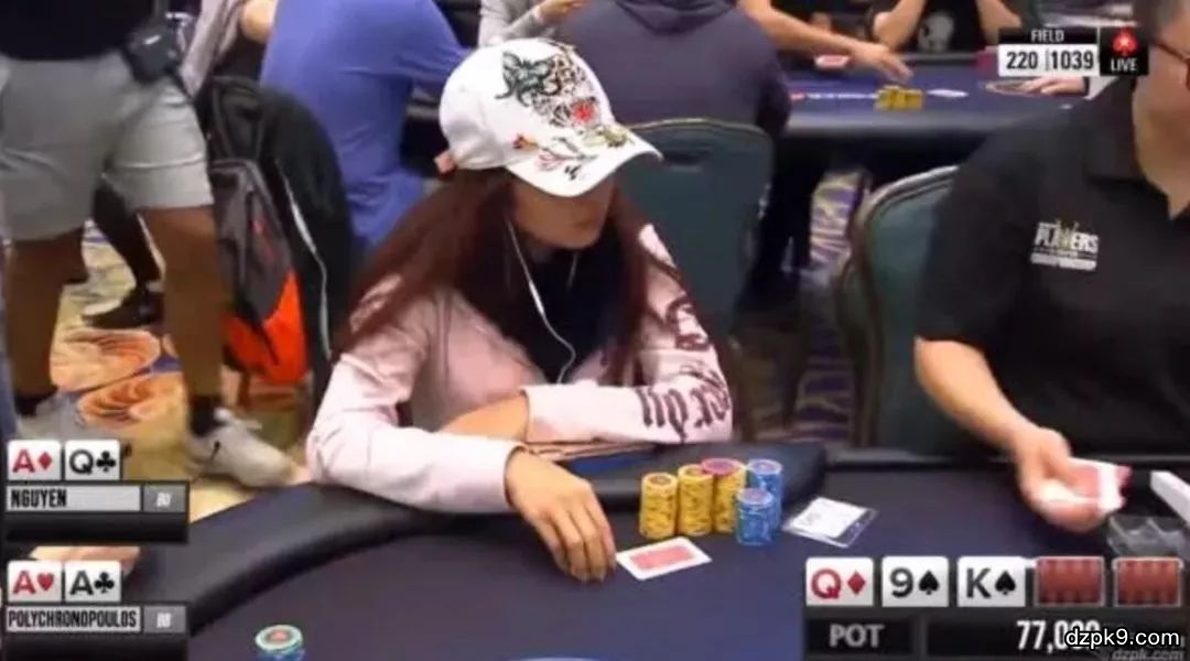 这手牌来自2019年初扑克之星举办的PSPC玩家冠军赛,当时立马引起了轩然大波。越南女牌手Thi Xua Nguyen击中了葫芦,经过良久思考,她决定弃牌。