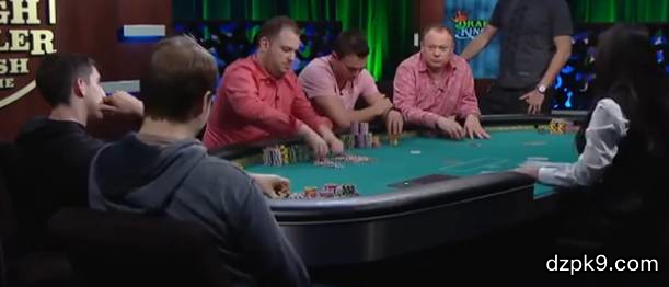 翻牌前两人就已经火花四溅了。但每一个动作都代表着非常多的意义。Robl拿到88,非常好的底牌,但当你发现自己被夹在Scott Seiver和Dan Colman之间,且这俩人像疯了一下互相加来加去的时候,这手牌明显已经不够强了。Seiver采取了一种异常激进的打法。两名对手的范围都是非常宽的,原因就是他们的位置,一个HJ(Hi Jack,庄家右手边的第二个位置),一个CO(Cut off,关煞位,庄家右手边的第一个位置),而他自己也并不只想建立底池。