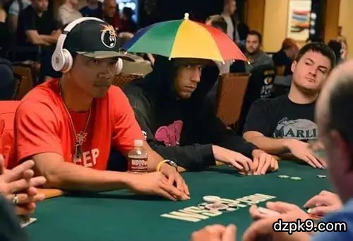 巧,还有在脑袋上顶把伞的。不知道是为了保护自己,还是外面下雨忘记收了,总之奇葩的牌手穿着在国外比比皆是。