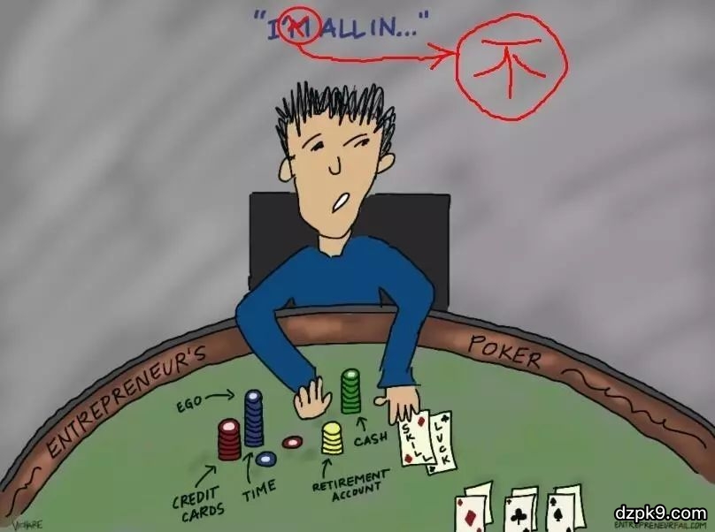 这时,坐在刚刚All in的选手旁边的一位大叔幽幽的问All in的选手:“你,刚刚说的是‘I 不 all in 吧?’”。