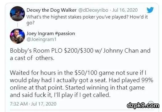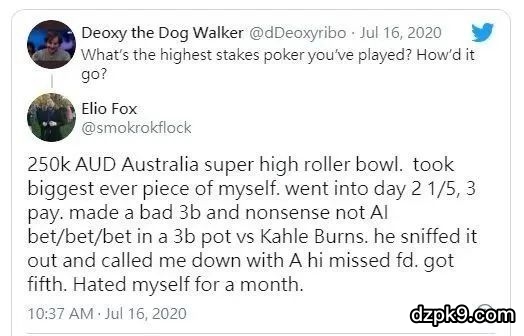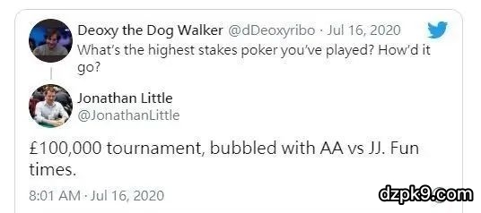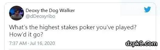 最近,有选手在推特上发了一条朋友圈,说“你玩过最大的局有多大?后来怎么样了?”此条推特受到了很多职业玩家的关注,大家纷纷来讨论自己见过亦或者是玩过的局。
