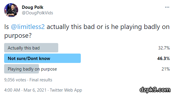 随后Polk还在推特上发起了名为“limitless是真的菜还是故意打得这么烂”的投票:
