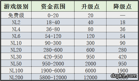 超高级别(NL200):30倍以上买入,高于60倍取款,低于29倍降级。