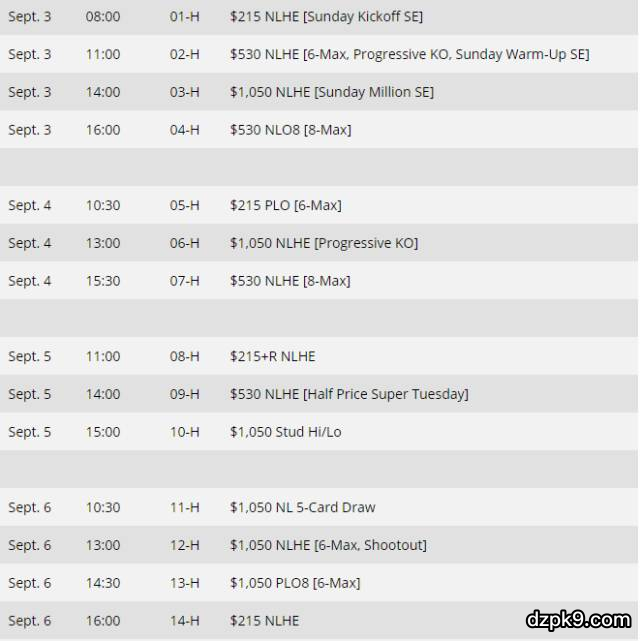 PokerStars的WCOOP全赛程计划