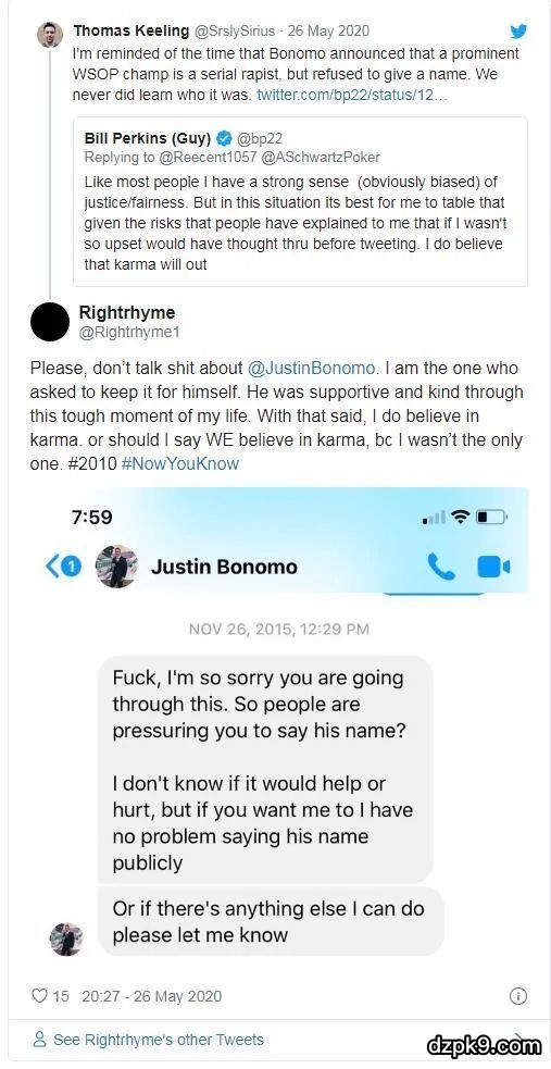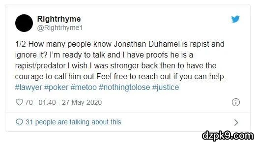 在2+2论坛上的这些指控细节中,看起来让人绝望,甚至能够感受到指控Jonathan Duhamel性侵的这两位女性的痛苦。