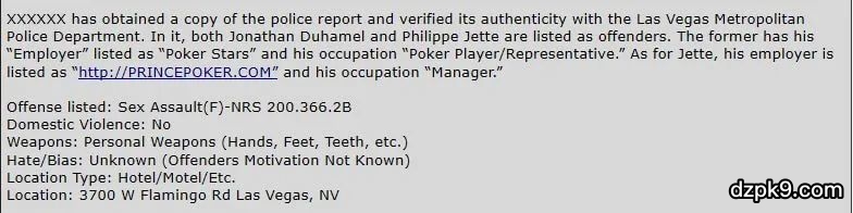 在本周早些时候,就有媒体报道称2010WSOP主赛冠军被指性侵的消息,到现在这一事件出现了新的细节和证据。根据证据显示,至少有两位女性声称遭到2010WSOP主赛事冠军Jonathan Duhamel性侵,其中一名甚至在2015年的时候就向拉斯维加斯大都会警察局提交了被性侵的相关报告。