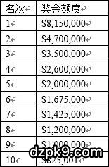 与此同时,以下为前10名的奖金额度分布: