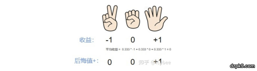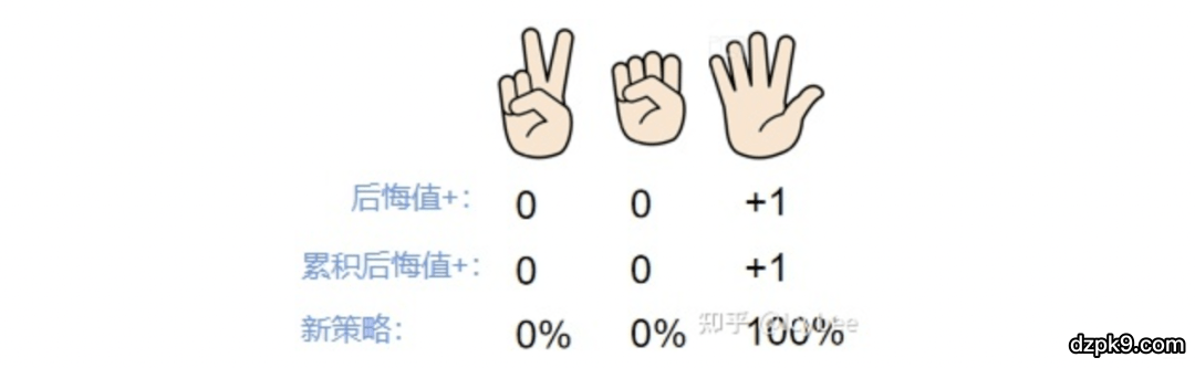 假设你有一个很笨的对手,他在玩石头剪刀布的时候只会出石头,此时CFR+算法如何确定你的“最优策略”呢?方法很简单: