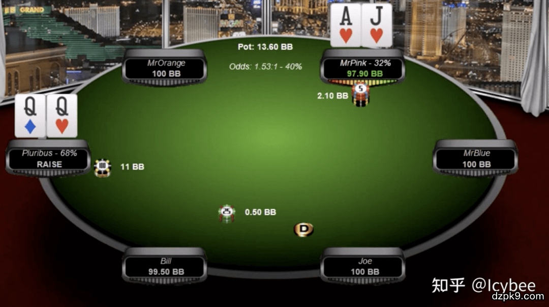 那Libratus的缺陷呢?其实也很明显,Libratus作为一个能打正常比赛的bot,是专门为ACPC[12] 计算机扑克大赛设计的算法,只能打固定筹码的局,就是双方开始的时候筹码都是10000,它的“总体策略”(blueprint)算法就决定了它是没法适应线上扑克那种多变的环境的。其之后的Pluribus[3] 也有类似的缺陷。所以你如果问我双人德州扑克究竟算不算被攻克了?我会说不算,因为Libratus只是攻陷了固定筹码数量的德州扑克比赛。