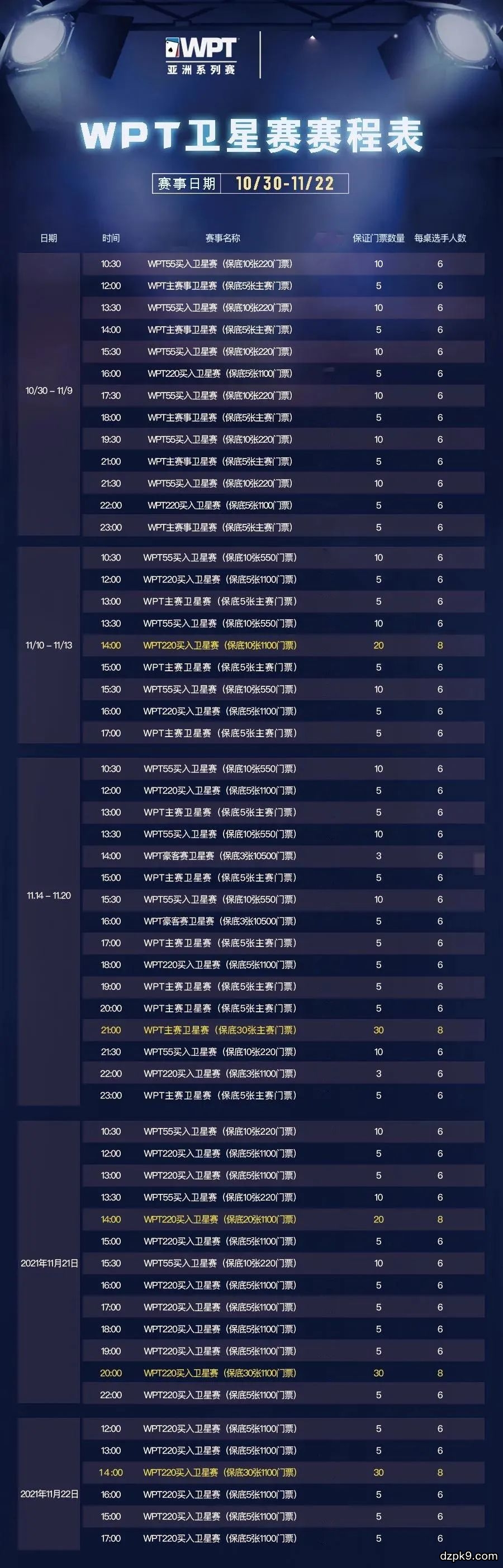 此次的WPT有着丰富的卫星赛赛程,给了更多玩家参与到WPT的机会。
