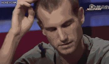 本来以为能拿下个大池,结果天意弄人丢了43%的筹码。好烦躁、好想哭,还是戴上墨镜掩饰一下吧。。。