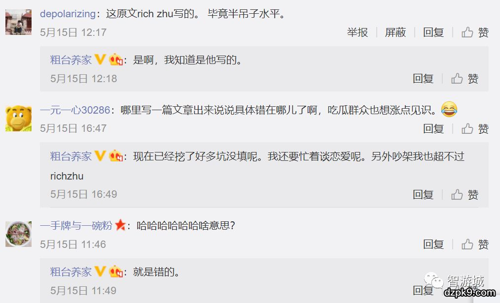 朋友后面的截图让我很意外,这人不但踩我的文章,还留下充满恶意和挑衅的评论。在业界,我是得罪过一些人,所以有时候微博上会留下一些恶意的留言,一些loser躲在屏幕后面留下各种泄愤的言论本来就不是什么奇怪的事。但这个人,我实在想不起跟他有任何形式的交流,我跟这人连一句话都没说过,我只知道他在智游学堂微信群里面,也有智游城论坛的id,但从未表现过任何恶意。
