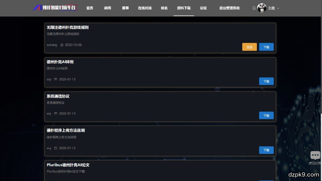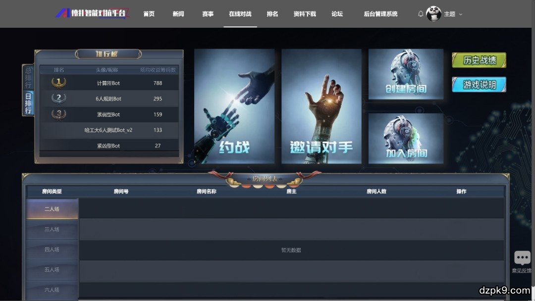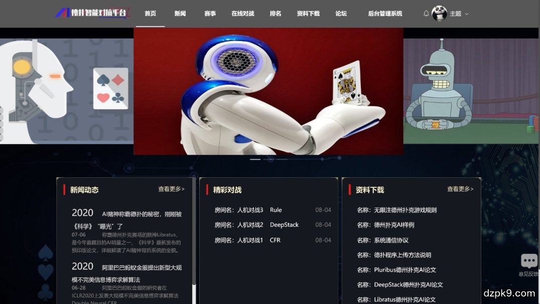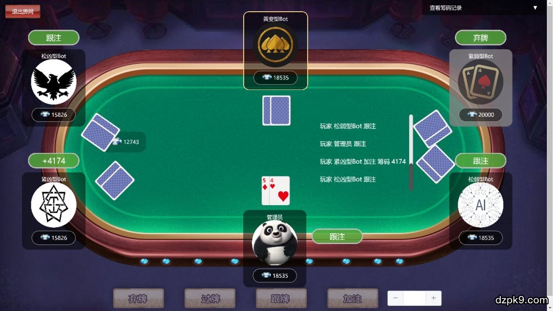 平台内置知识驱动推理型、数据驱动学习型、离线学习型、在线适应型等多种不同种类的高水平两人/多人德扑AI;