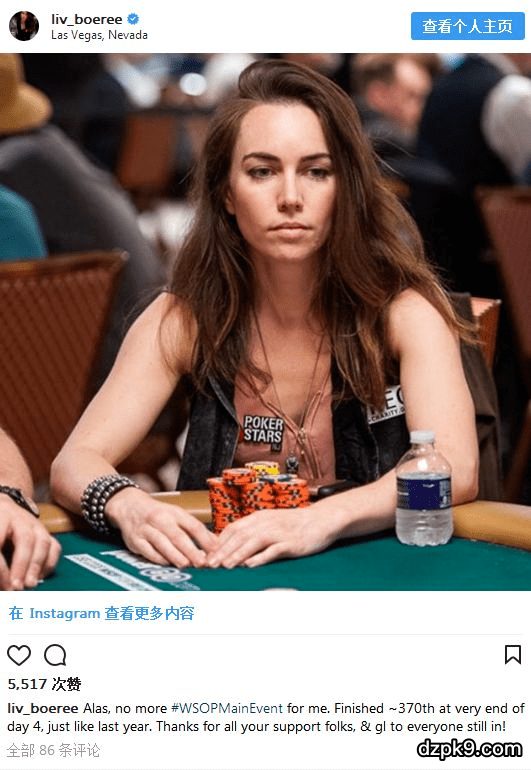 Boeree的锦标赛收入是五人中最高的,在这么多年的牌手生涯中她一共拿到了近350万美元的线下赛事奖金,去年她还和男友Igor Kurganov一起拿下了WSOP团队赛冠军,收获一条个人金手链,不过今年她只闯入了两个钱圈,一个是5000刀买入的无限德扑赛事,名次31,一个是主赛的第379名。