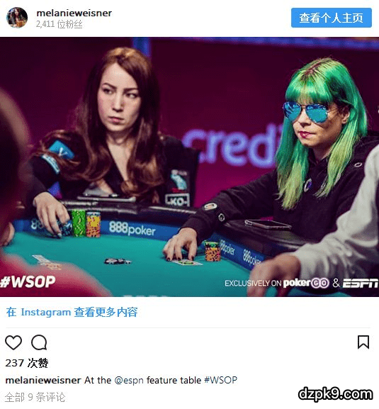 Weisner的锦标赛收入为807,007美元,曾在WSOP进过31个钱圈,包括今年的3个,它们分别是主赛的第780名,女士赛的第70名以及巨型赛的第757名,她在WSOP收获的奖金累计362,762美元。