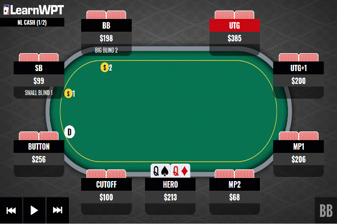 因为我们的对手通常只有相对较少的补牌(out),我们可以通过做一个较小的下注(也许是50美元)赚得最多收益。若对手对我们的下注全压,我们就跟注。
