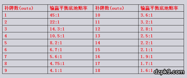 但在此之前,我们要先理解底池赔率的概念。某一手牌玩家到了河牌,什么牌都没中,底池是60,他下注30去诈唬对手,也就是冒着输掉30的风险去拿回90(底池的60和自己现在投入的30),那么这时候的底池赔率是90:30,也就是3:1。
