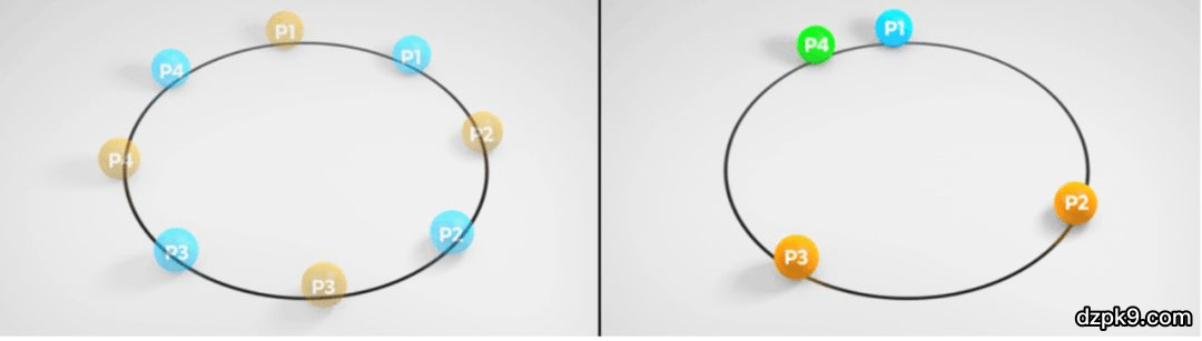 尽管在任何有限制游戏中都存在纳什均衡,但通常在具有三个或更多玩家的游戏中,难以有效地计算纳什均衡。(对于两人一般和游戏也是如此。)此外,在两个以上玩家的游戏中,即使作出精确的纳什均衡策略,也有可能输掉比赛。例如在游戏 Lemonade Stand game 中,每个玩家同时在一个圆环上选择一个点,并且想尽可能远离任何其他玩家。纳什均衡是所有参与者沿着环间隔相等的距离,但是有很多方法可以实现。如果每个玩家独立计算其中一个平衡点,则联合策略不太可能导致所有玩家沿着该环间隔开同等距离。如下图所示:
