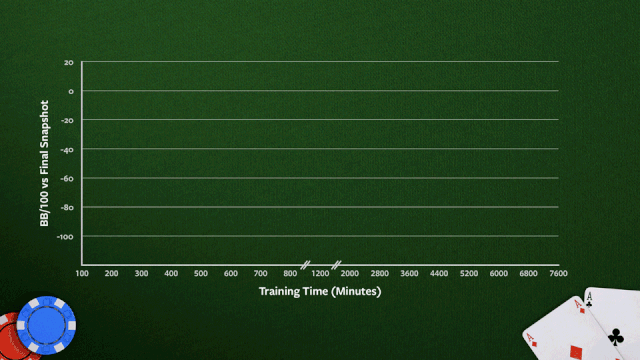 尽管 Pluribus 最初在通过 self-play 离线计算蓝图策略时尝试 limping,但随着 self-play 的继续,它逐渐放弃了这一策略。