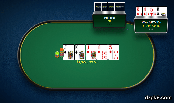 Isildur1当时在一个翻牌圈拿到K葫芦的牌局中从那Ivey那儿赢走一个1127955美元的超大底池。我们当然无法略过Phil Ivey,尽管他在本文中输掉一个大底池。但毕竟没有谁在网络鼻血级常规局赢得比他更多。