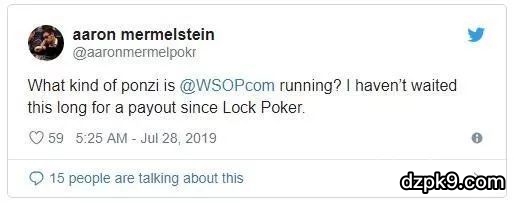 Aaton Mermelstein甚至认为这可能是个庞氏骗局,也就是说当玩家B把钱存进账户后,平台才有钱付给玩家A,他发推吐槽:“@WSOPcom在策划一场什么样的庞氏呢?自从LockPoker的事之后,我这是这么久以来头一次等提现等那么久~”