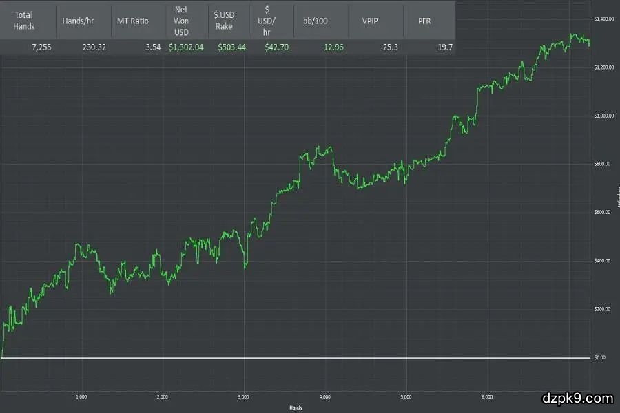 要想知道自己玩扑克到底有没有赢钱,必须看这个数据。想知道年入多少,也可以通过winrate算出来。
