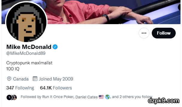 社交媒体上有很多高额桌职牌用加密朋克角色作为头像,他们之中有些人可能是在一开始的时候只用50美元就购入的。那些拥有加密朋克的牌手包括Bill Perkins、Mike McDonald、Dan Smith、Ryan Reiss、Ryan Daut、Landon Tice、Jason Mo等。