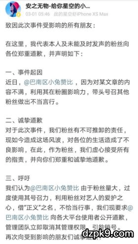 拿肖战唯粉和同人圈交手这事来说,一开始时主力战将/意见领袖“巴南区小兔赞比”不断明确立场,强调对《下坠》一文的举报并不只是为肖战粉丝团体夺取利益,而是为了广大被写进同人文的受害艺人发声,请求国家网信办对这些传播不堪内容的同人文进行严肃处理。