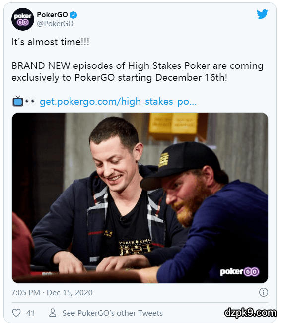 PokerGO发推:“快了快了!全新的《高额桌扑克》将于12月16日播出,只在PokerGO!”