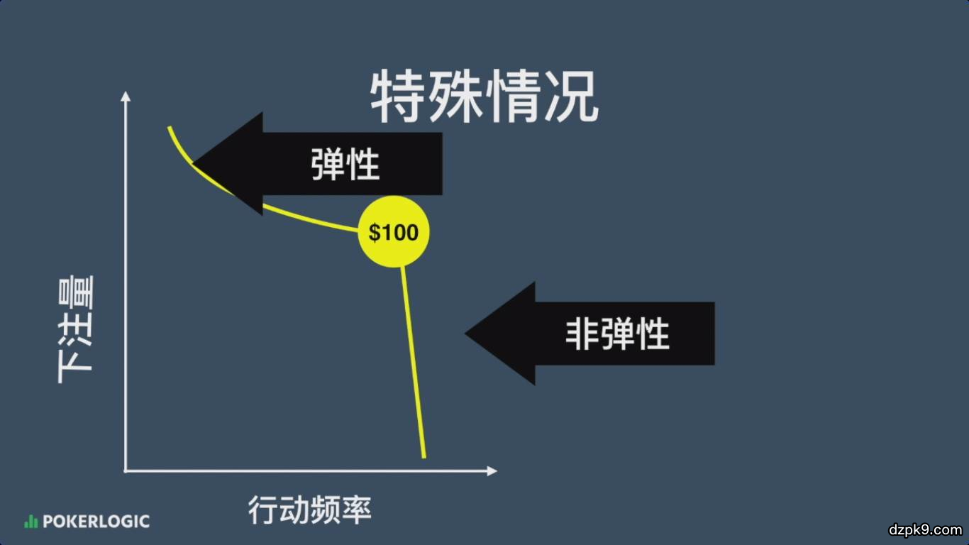 很多玩家,尤其在1-2这种低级别线下游戏中,都会被100的下注吓到。他们在低于99的下注往往不太敏感,即非弹性,但一旦遇到对手超过100的下注就瞬间变紧了。